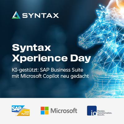 Der Syntax Xperience Day zeigt, wie SAP, Microsoft und Syntax Unternehmen gemeinsam auf dem Weg in eine neue Ära der intelligenten Transformation begleiten. Im Mittelpunkt stehen KI‑basierte Innovationen, Microsoft‑Copilot‑unterstützte SAP‑Prozesse sowie intelligent verzahnte Cloud‑Lösungen, die Komplexität reduzieren und spürbare Verbesserungen im Geschäftsalltag ermöglichen.