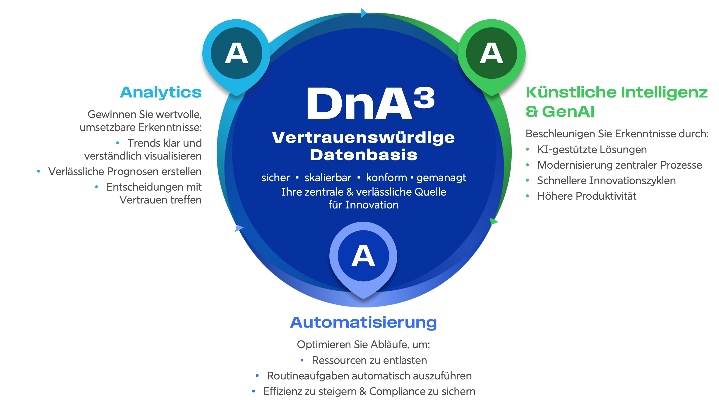 Mit Syntax DnA³ schaffen Sie ein einheitliches, unternehmensweites Rahmenwerk, das Daten gezielt in einen strategischen Wettbewerbsvorteil verwandelt.